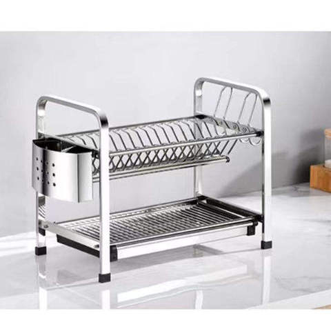 Factory Prices Hot Selling 2 Tier Electroplate Eco Friendly Multifunctional Kitchenware Dish Rack Stainless Steel Drainer