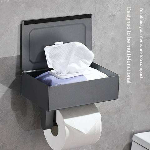 Wholesale Modern Stainless Steel Bathroom Accessories Wall Mounted Black Toilet Paper Dispenser with Phone Shelf Holder Storage
